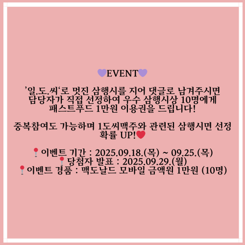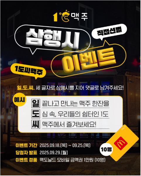 【09/18(목)~09/25(목)】 1도씨맥주 ‘일·도·씨’ 삼행시 이벤트