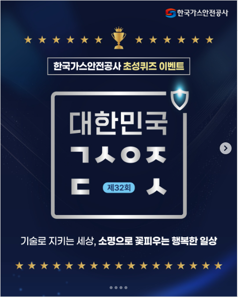 ‘제32회 대한민국 ㄱㅅㅇㅈㄷㅅ’은 가스안전의식 확대와 체계적 안전관리로 국가경쟁력 제고에 기여한 가스인을 정부포상으로 예우하는 뜻깊은 행사입니다. 이를 기념해 초성 퀴즈 이벤트가 함께 진행되며, 정답자 중 추첨을 통해 경품을 제공합니다. (퀴즈는 짧지만 의미는 길게—안전 문화의 한 글자, 한 글자에 힘이 실려요 )