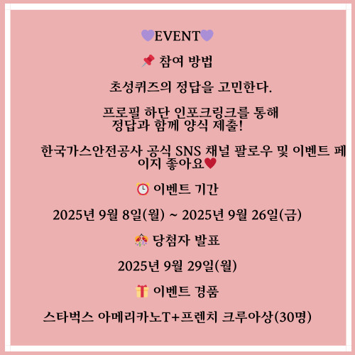 본 글은 제공된 안내(이벤트 기간 9/8~9/26, 발표 9/29, 경품 구성, 개최 장소 및 성격, 참여 3단계)에 근거해 사실만 정리했습니다. 최종 조건·변경 사항은 한국가스안전공사 공식 안내를 확인해 주세요.