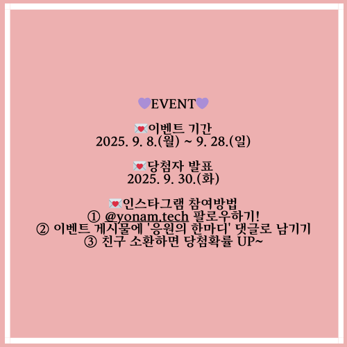본 글은 제공받은 이벤트 안내(기간: 9/8~9/28, 발표: 9/30, 참여처: @yonam.tech, 미션: 응원 댓글·친구 소환)에 기반해 작성되었습니다. 세부 운영(경품, 선정 방식 등)은 주최 측 공지를 최우선으로 확인해 주세요.